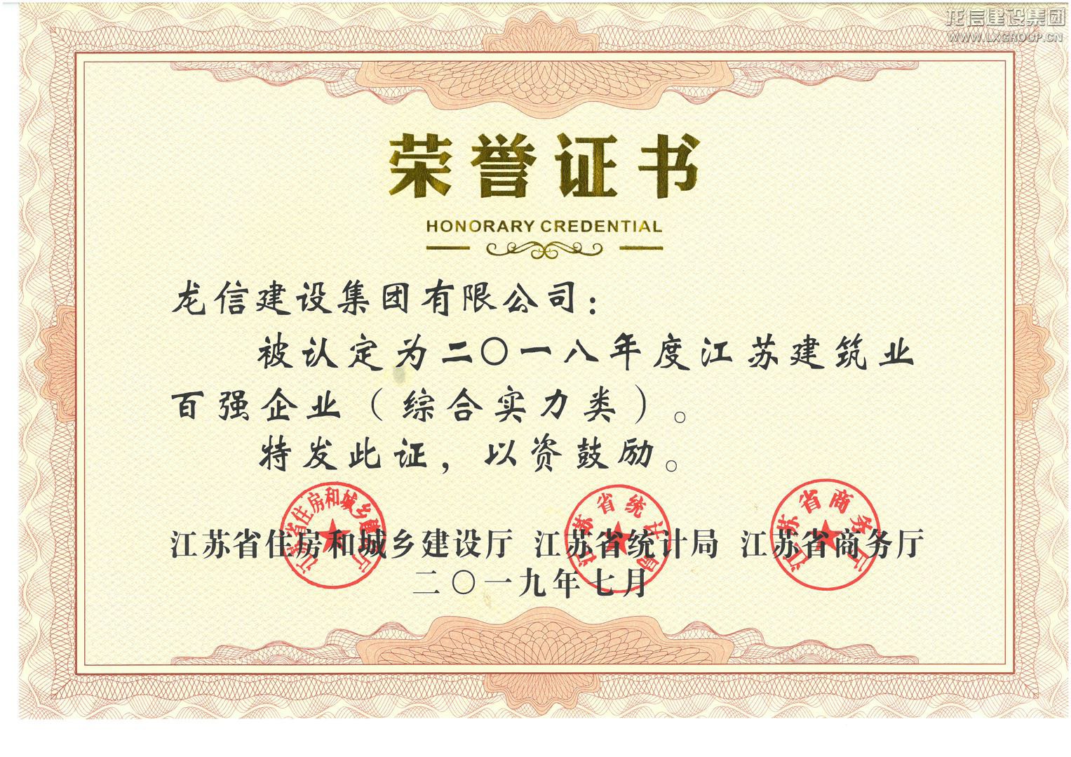 2018年度江蘇建筑業百強企業(綜合實力類)