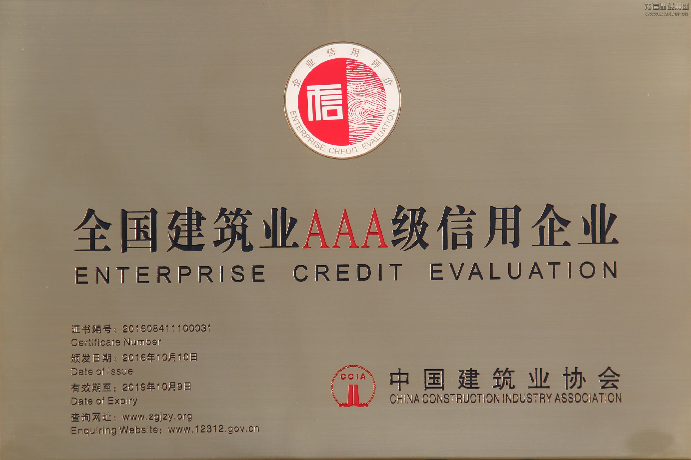 全國建筑業AAA級信用企業2016
