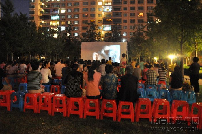 圖:夜幕下,龍馨園業(yè)主們觀賞電影《十二生肖》