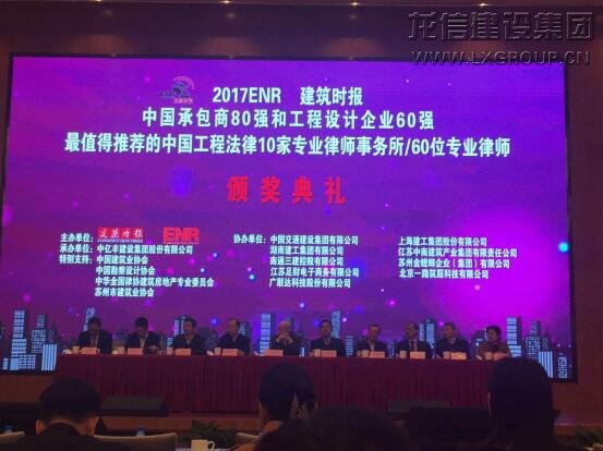 11月30日,由美國《工程新聞紀錄》(ENR)和中國《建筑時報》共同主辦的2017“中國承包商80強和工程設計企業60強”頒獎典禮在蘇州隆重舉行。龍信集團榮列“中國承包商80強”第32位,這已是我集團連續第9年入圍該榜單,充分展現了集團優秀的品牌形象和較強的綜合實力。