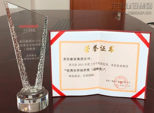 2015年12月7日,復地集團在上海浦東星河灣酒店舉行2015年復地集團合作商大會。龍信集團二分公司二部施建昌經理應邀參加大會,并榮獲“優秀合作伙伴獎(戰略類)”。
